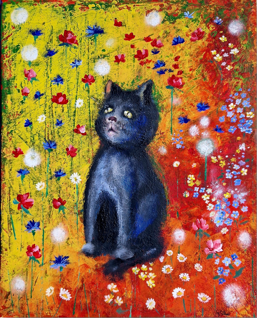 Kater im Garten (Nach G. Klimt), 40×50, Acryl auf Leinwand