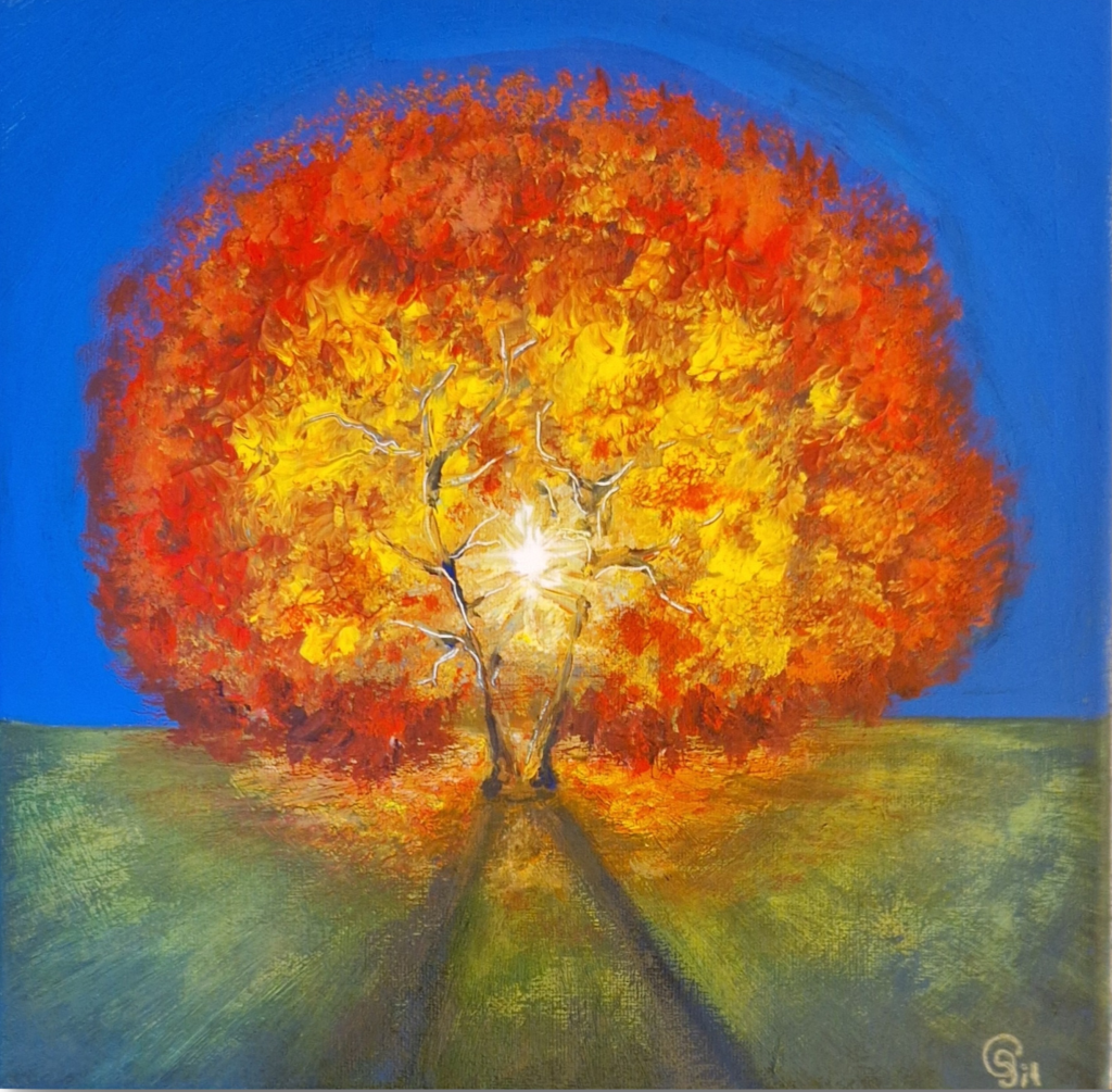 Herbstsonne, 30×30, Acrylfarben auf Leinwand, 2020, 195 Euro