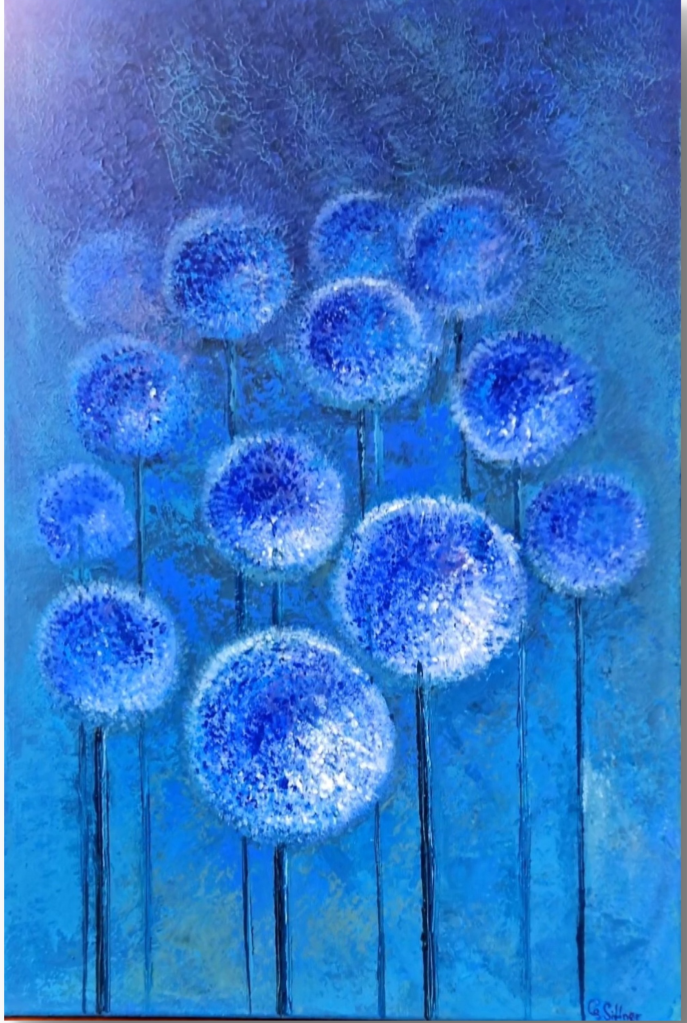 Blaue Disteln, 40×60, Acryl