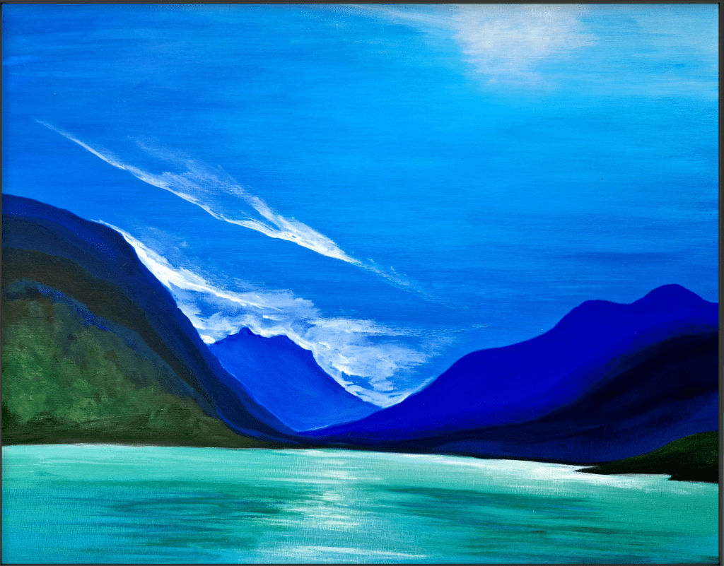 Alpensee Thumsee (2022), 60×50, Acrylfarben auf Leinwand