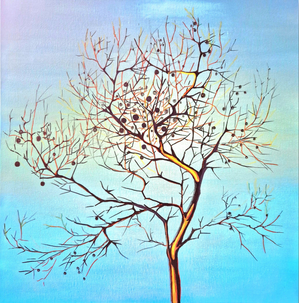 Junger Platanenbaum (2024), 50×50, Acrylstifte auf Leinwand