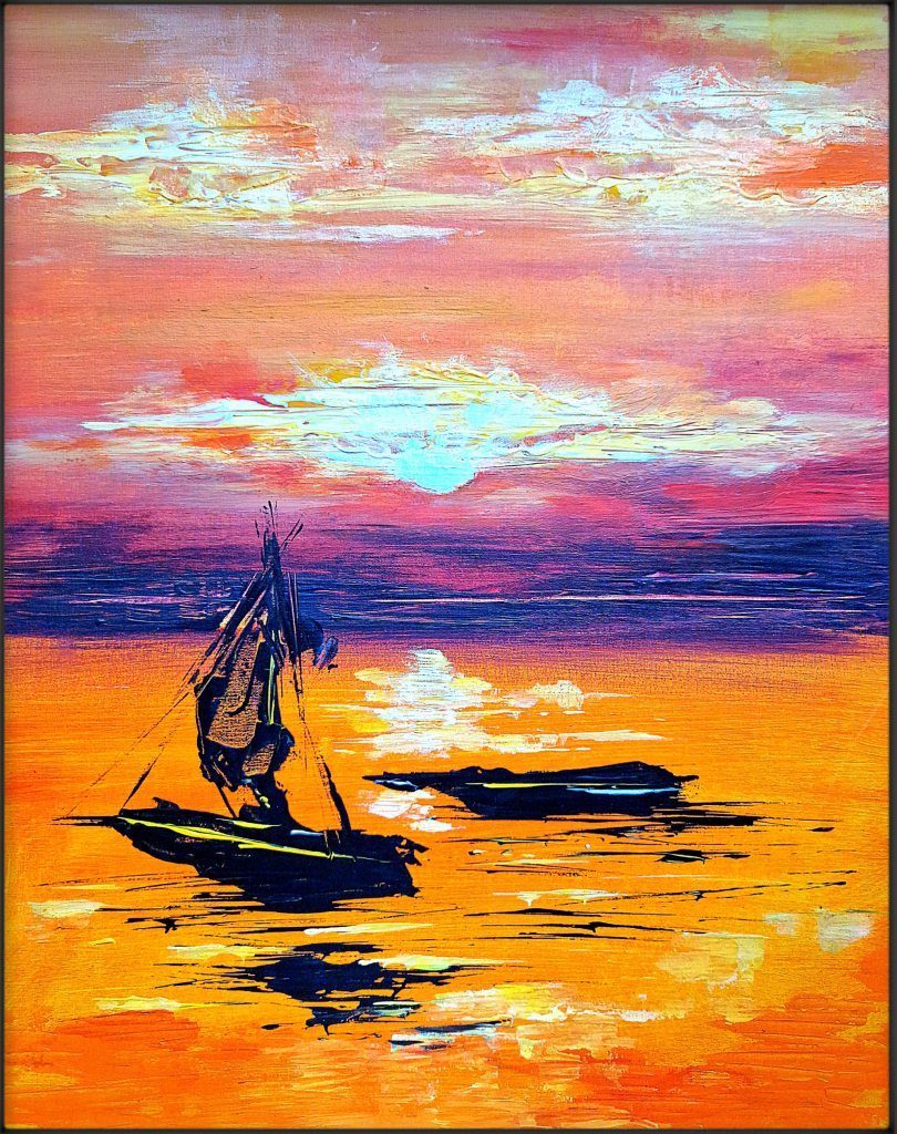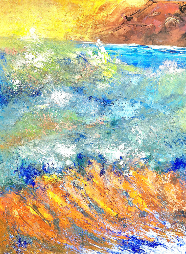 Sun through the Sea (2024), 60×80, Acrylfarben auf Leiwand